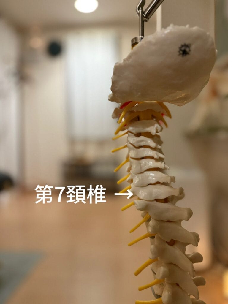 第7頚椎と第1胸椎(首の下〜胸)の動きに問題がみられたため合わせて調整をしました。
