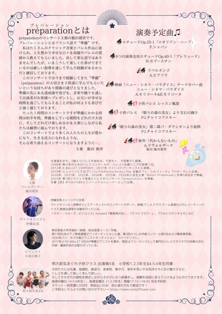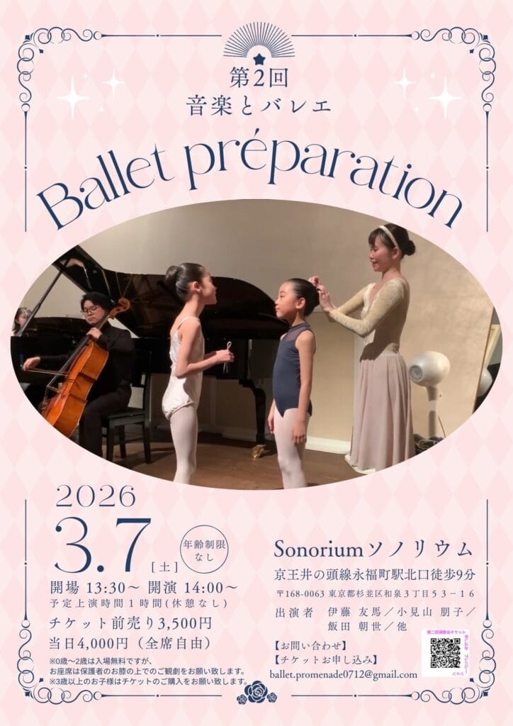妻(バレエピアニスト)が3月7日に演奏会をします!